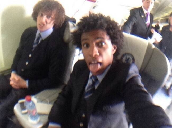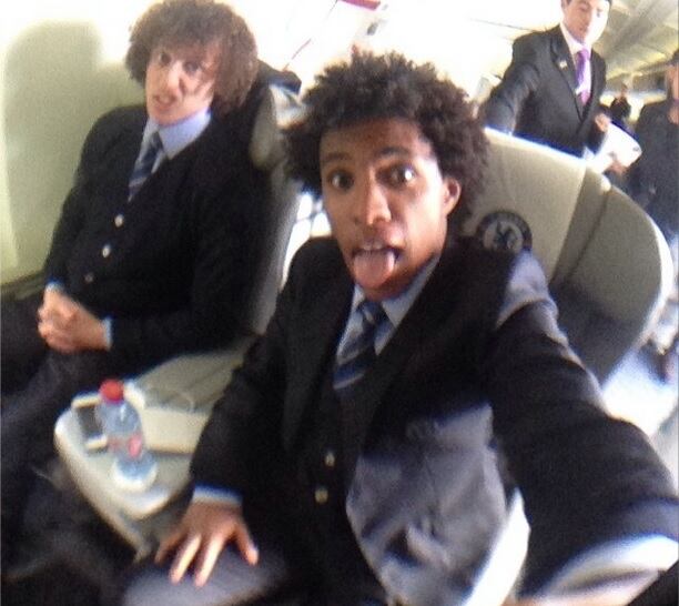 William y David Luiz no se estresan mientras viajan a Estambul donde Chelsea enfrentará al Galatasaray en Liga de Campeones.