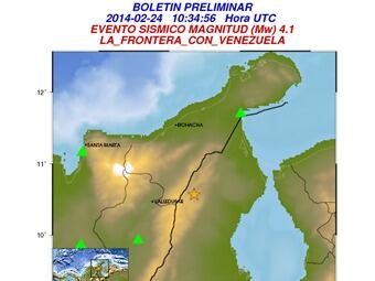 Pasadas las 5: 30 de la mañana se presentó un sismo de magnitud 4.1 en la frontera entre Colombia y Venezuela, en el departamento de La Guajira, a 33.5 kilómetros de la cabecera municipal de El Molino