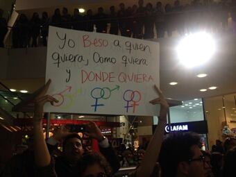 Masiva ‘besatón’ en centro comercial de Bogotá contra la discriminación