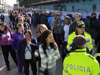 La Plaza de Bolívar es uno de los principales lugares de votación en el país y únicamente hay ingreso para peatones ya que las calles alrededor están cerradas con un dispositivo de seguridad
