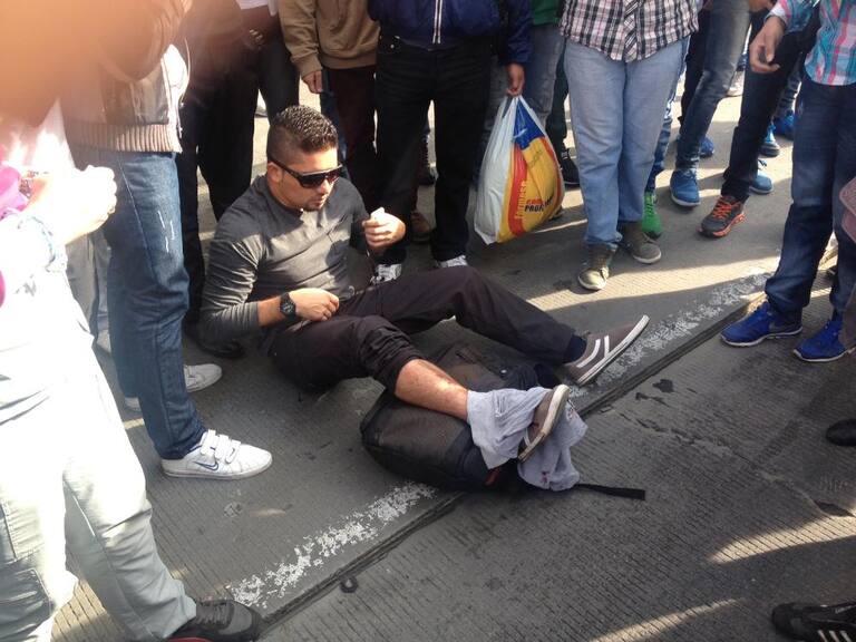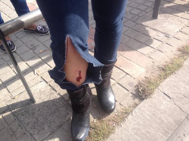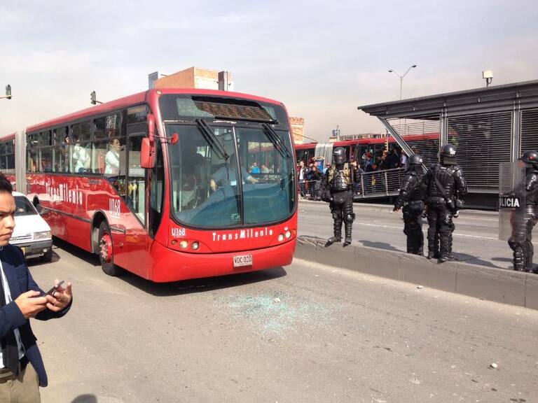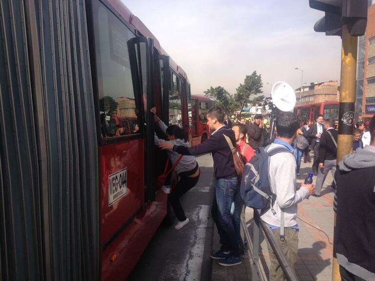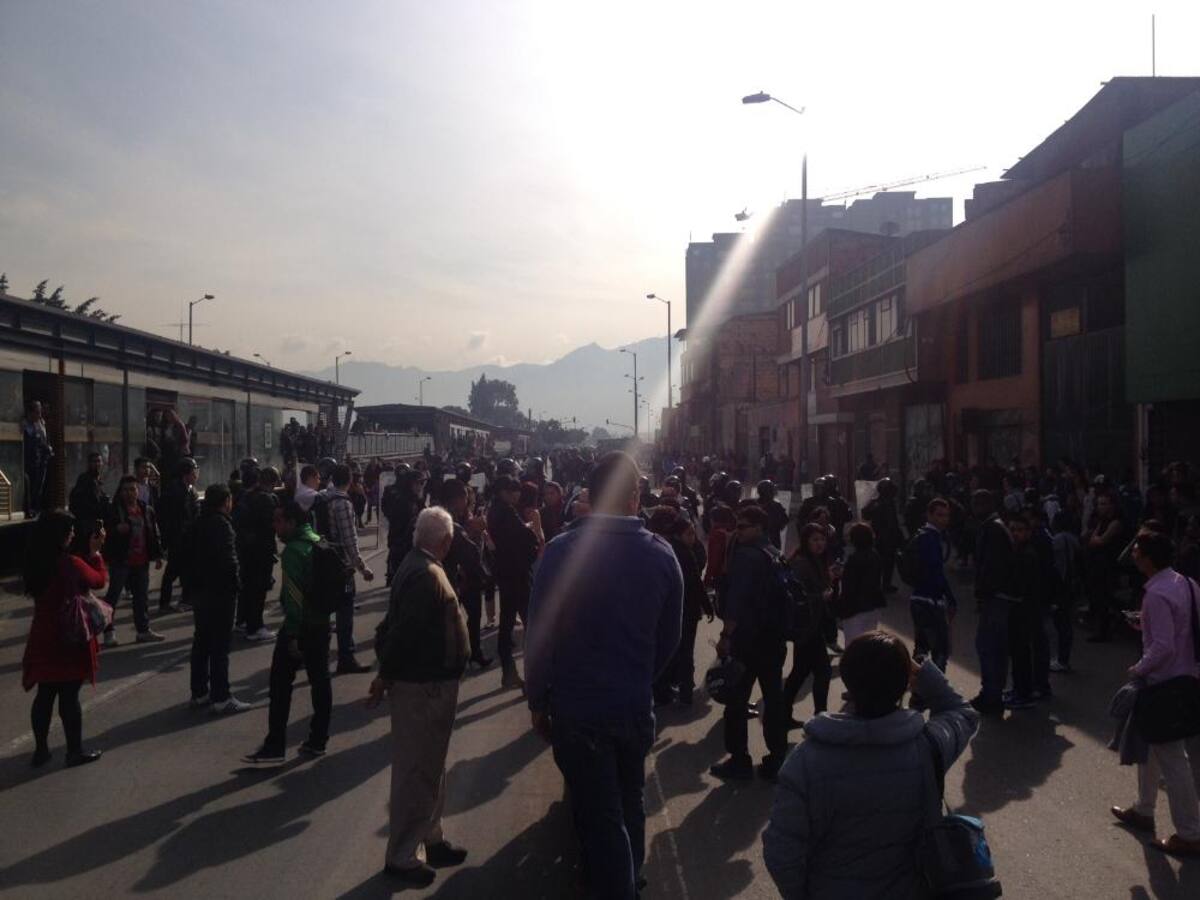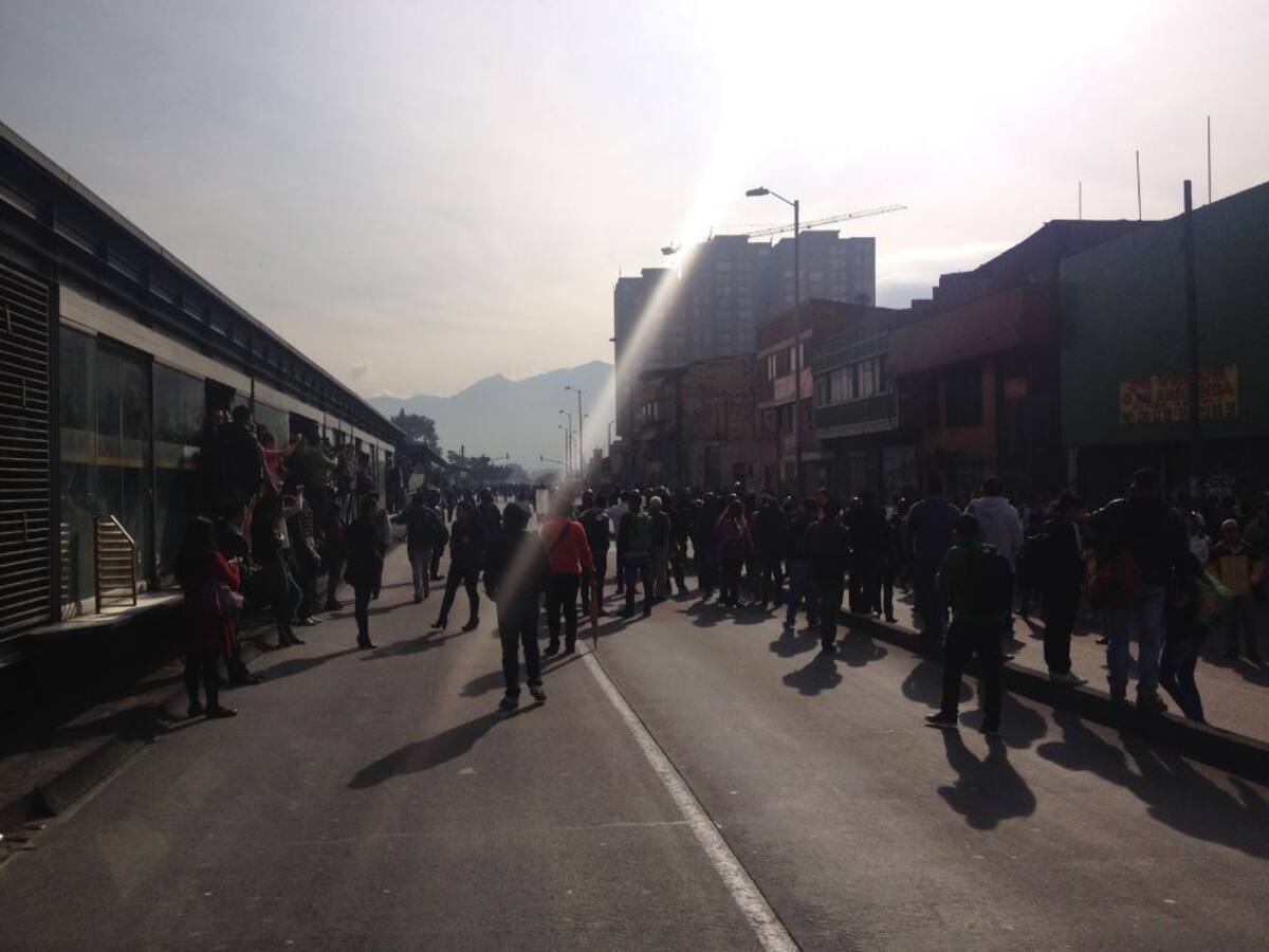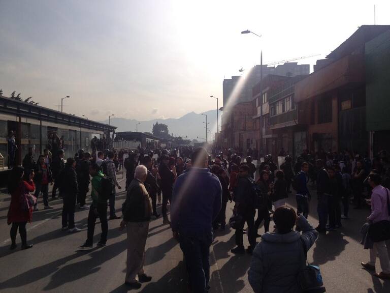 Cerca de 150 usuarios inconformes con el servicio bloquean la Avenida Caracas con calle 47 sur en la estación Santa Lucía.