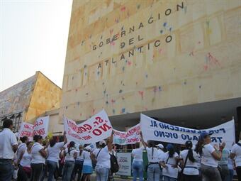 Previo al inicio de la audiencia pública de adjudicación, al menos 1000 empleados de Uniapuestas, entre vendedores y administrativos, protagonizaron una marcha pacífica y se tomaron el frente de la Gobernación para exigir el respeto a su estabilidad laboral