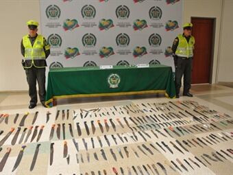 La Policía del Quindío incautó más de 300 armas blancas, gracias a los operativos de control a la entrada del Estadio Centenario, ante la fecha del clásico cafetero en la noche del lunes 17 de marzo