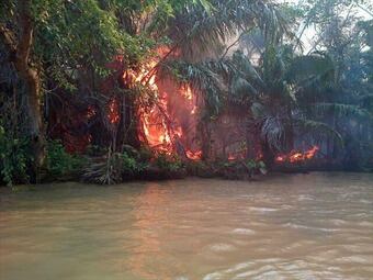 "Es una zona selvática, fangosa, que dificulta el acceso por vía terrestre y se suma a la dificultad que los incendios están en la copa, los árboles son palmas a alturas de 30 metros", señaló el coronel Zambrano