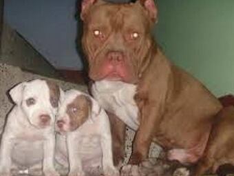 La perra pitbull estaba con sus crías cuando se acercó la pequeña.