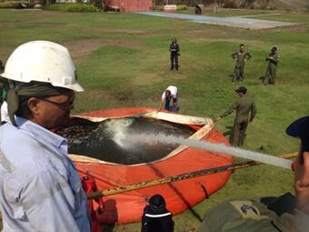 Dijo que hasta la zona fue necesario llevar, en avión, una piscina portátil con capacidad para 5000 galones de agua, que fue llenada por un carro tanque de la Empresa Drummond, y desde allí, abastecer el helicóptero.