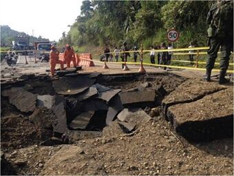 Un comando de las Farc destruyó con dinamita la carretera Panamericana, entre Cali y Popayán, a la altura del kilómetro 66, lo que a esta hora tiene el lugar con paso restringido