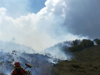 Unidades del cuerpo de Bomberos tratan de controlar un incendio forestal que durante este sábado consume varias hectáreas del Cerro Quitasol, en el municipio de Bello, norte del Valle de Aburrá. El director del Departamento de Atención y Prevención de Desastres de Antioquia, Dapard, César Hernández Correa, confirmó que la conflagración consume zonas verdes a la altura del sector Telesillas de Bello