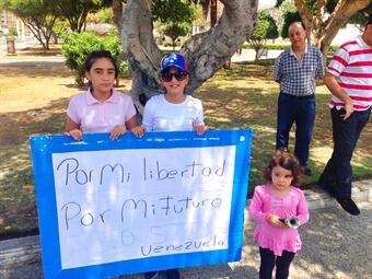 Abuela, madre e hijas adoptaron como rito casi obligatorio y permanente salir a diario en las tardes a cantar el himno nacional de Venezuela y a mostrar sus pancartas a quienes pasean por la plaza de la república en el centro de Maracaibo.