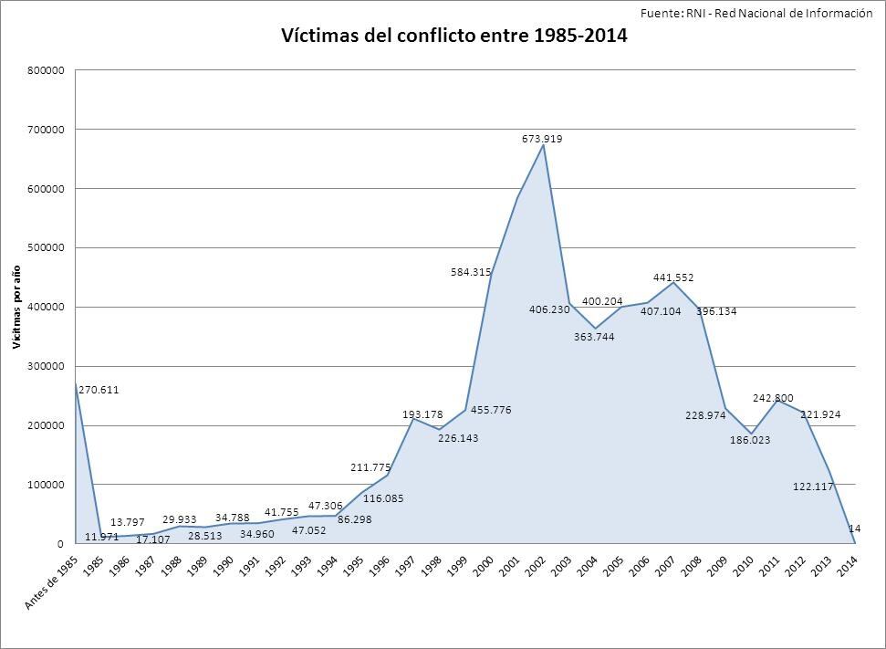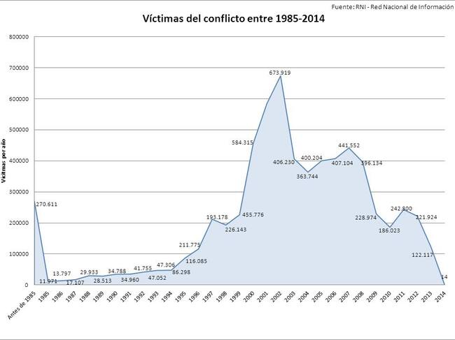 La Red Nacional de Información publicó, por años, el número de víctimas del conflicto armado en Colombia.