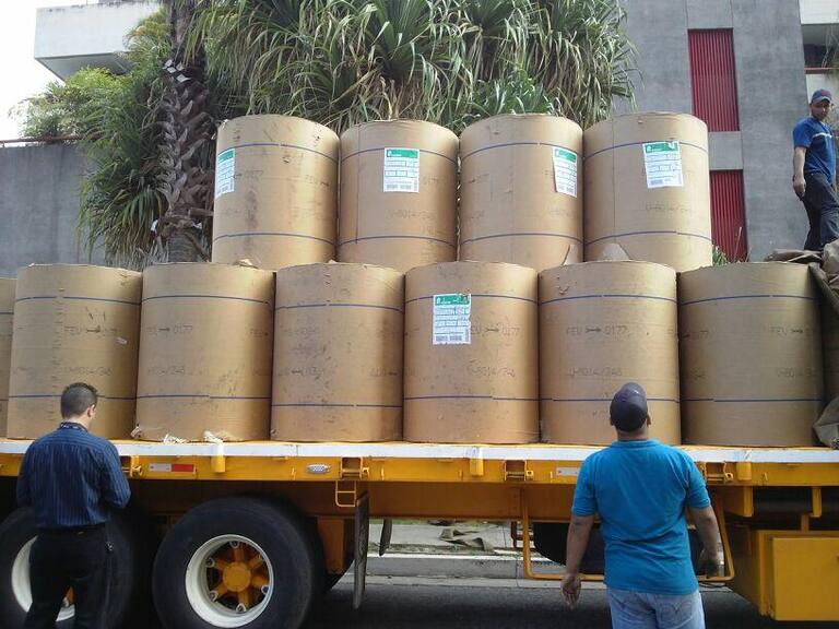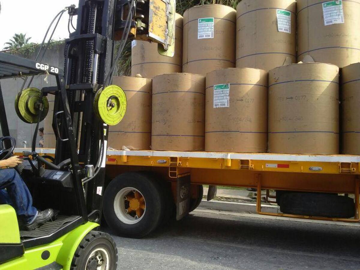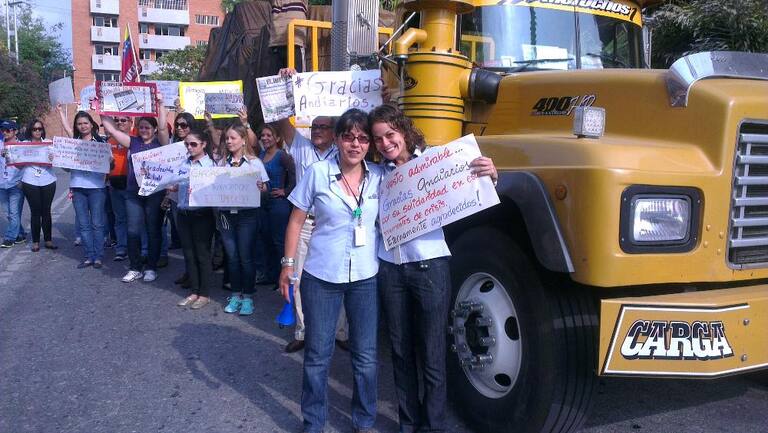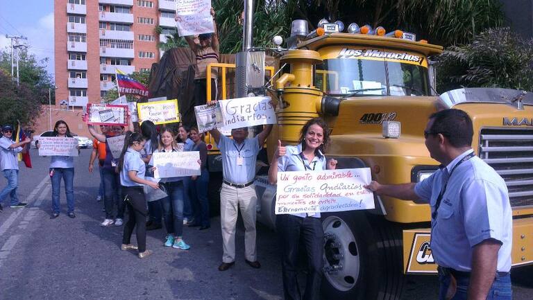 Con pitos, cornetas, los trabajadores del diario más antiguo del país recibieron las tractomulas.