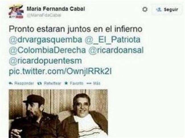 Enorme polémica generaron dos trinos de la representante electa a la Cámara por el Centro Democrático María Fernanda Cabal pocas horas después de la muerte del Nobel de Literatura Gabriel García Márquez