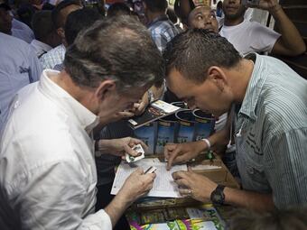Antioqueño intercambió laminas Panini con presidente Santos en Bello