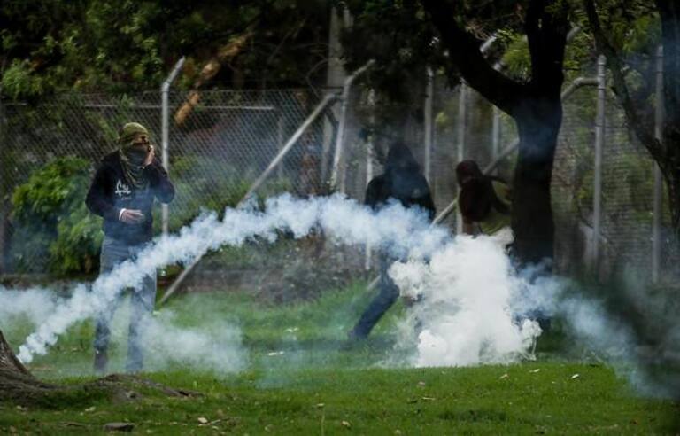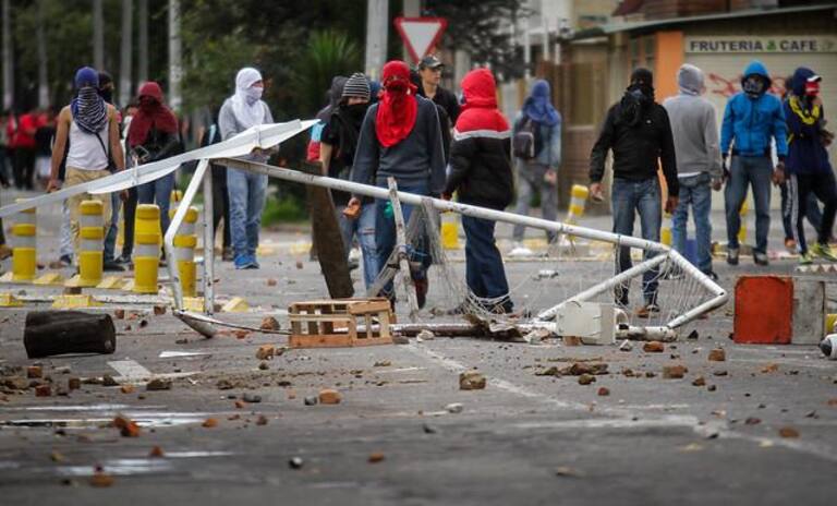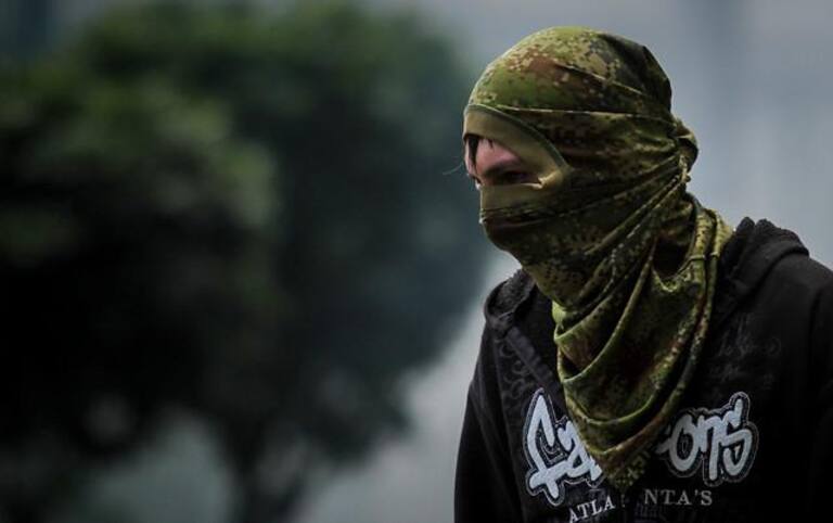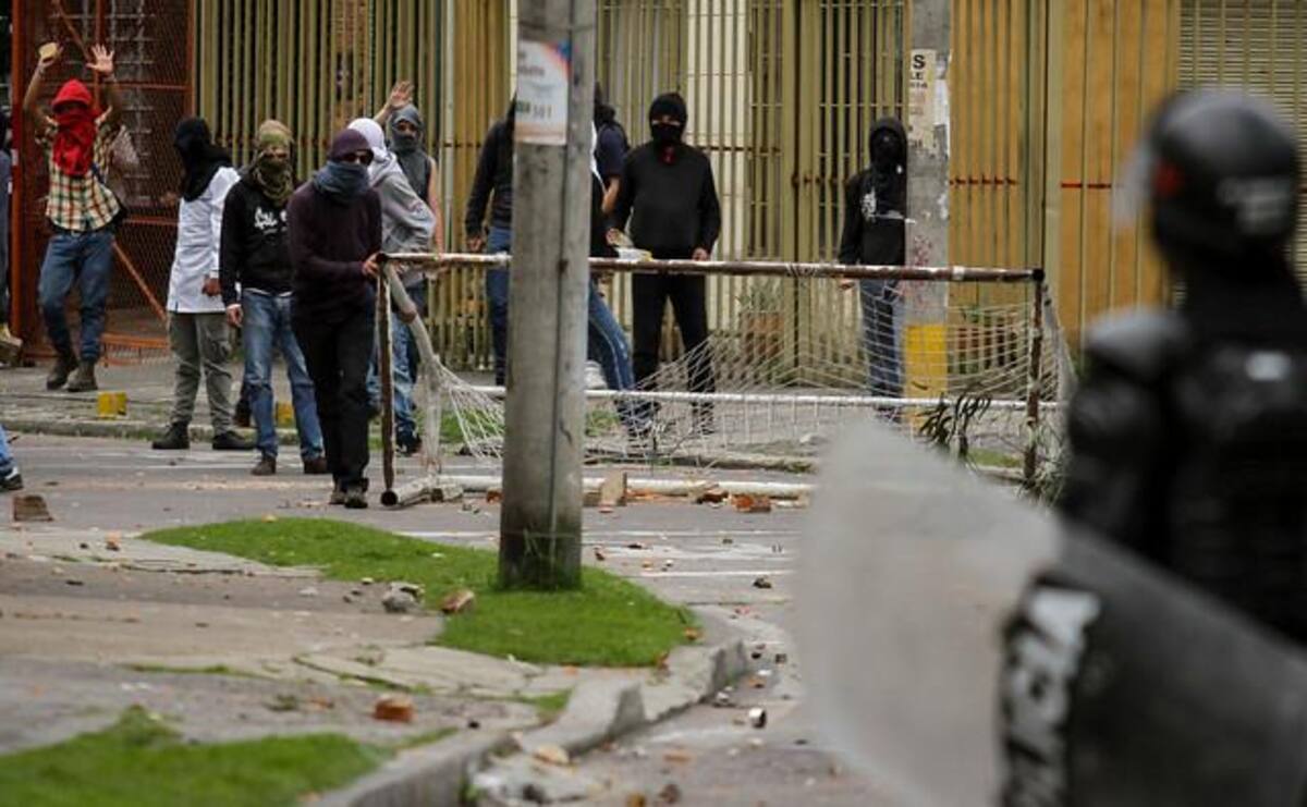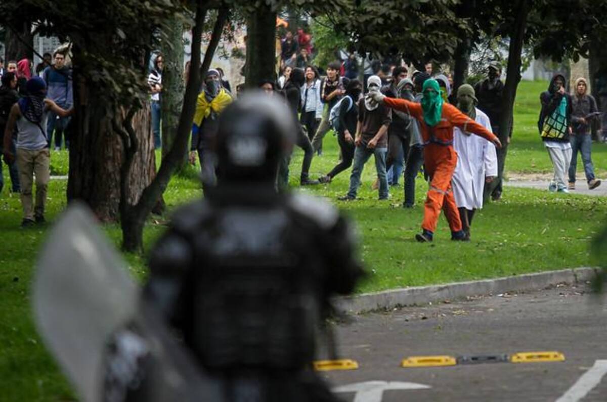 Encapuchados en la sede de Bogotá de la Universidad se enfrentaron al ESMAD.