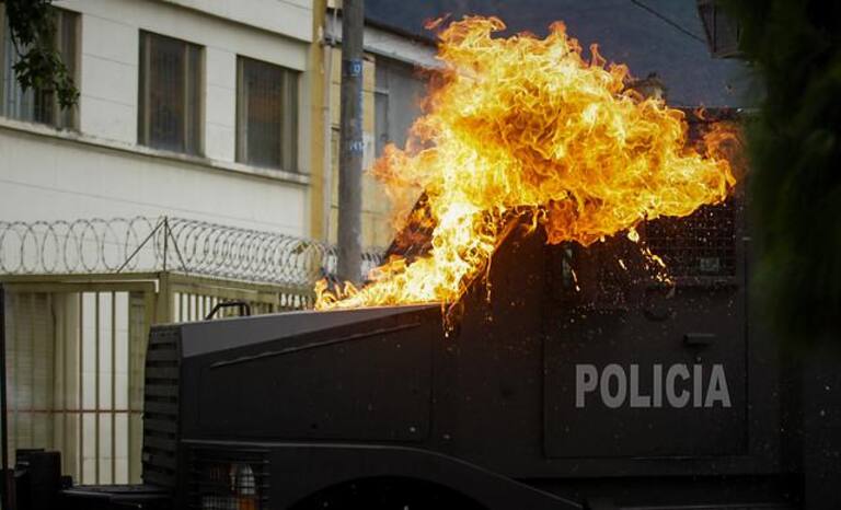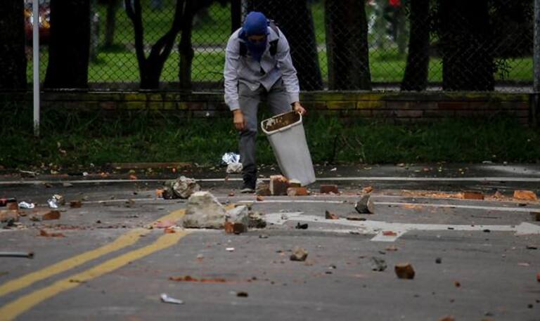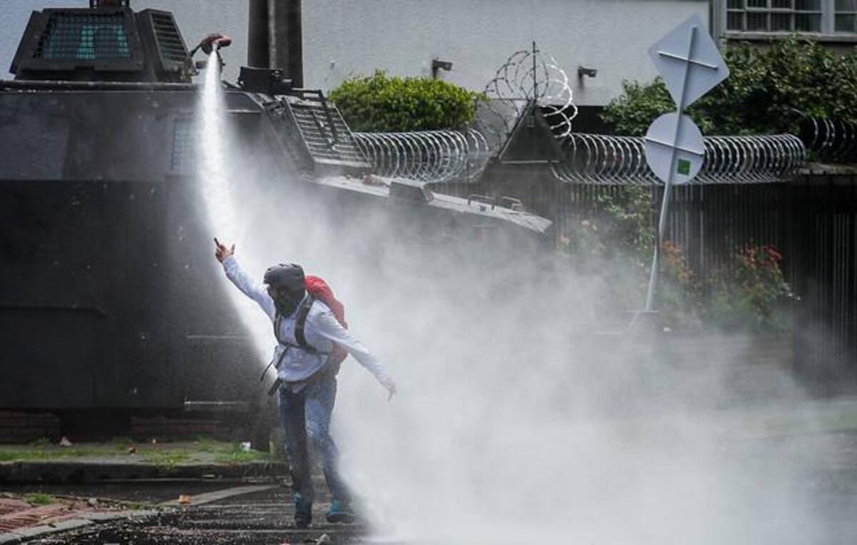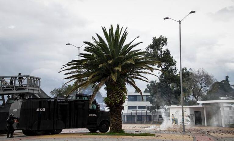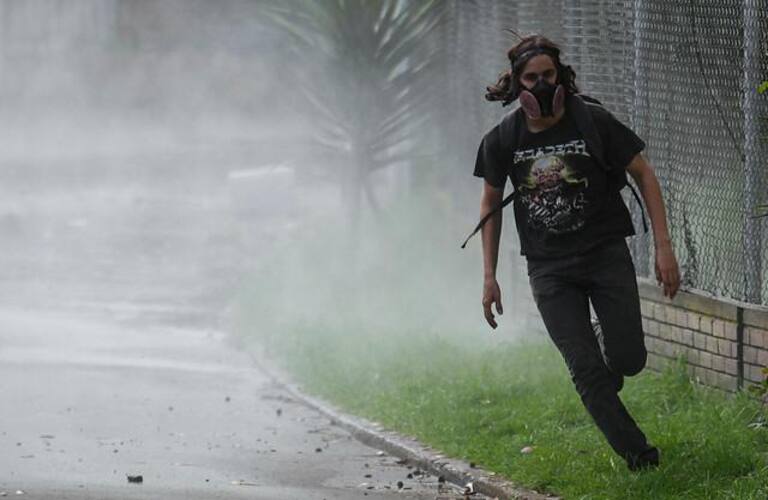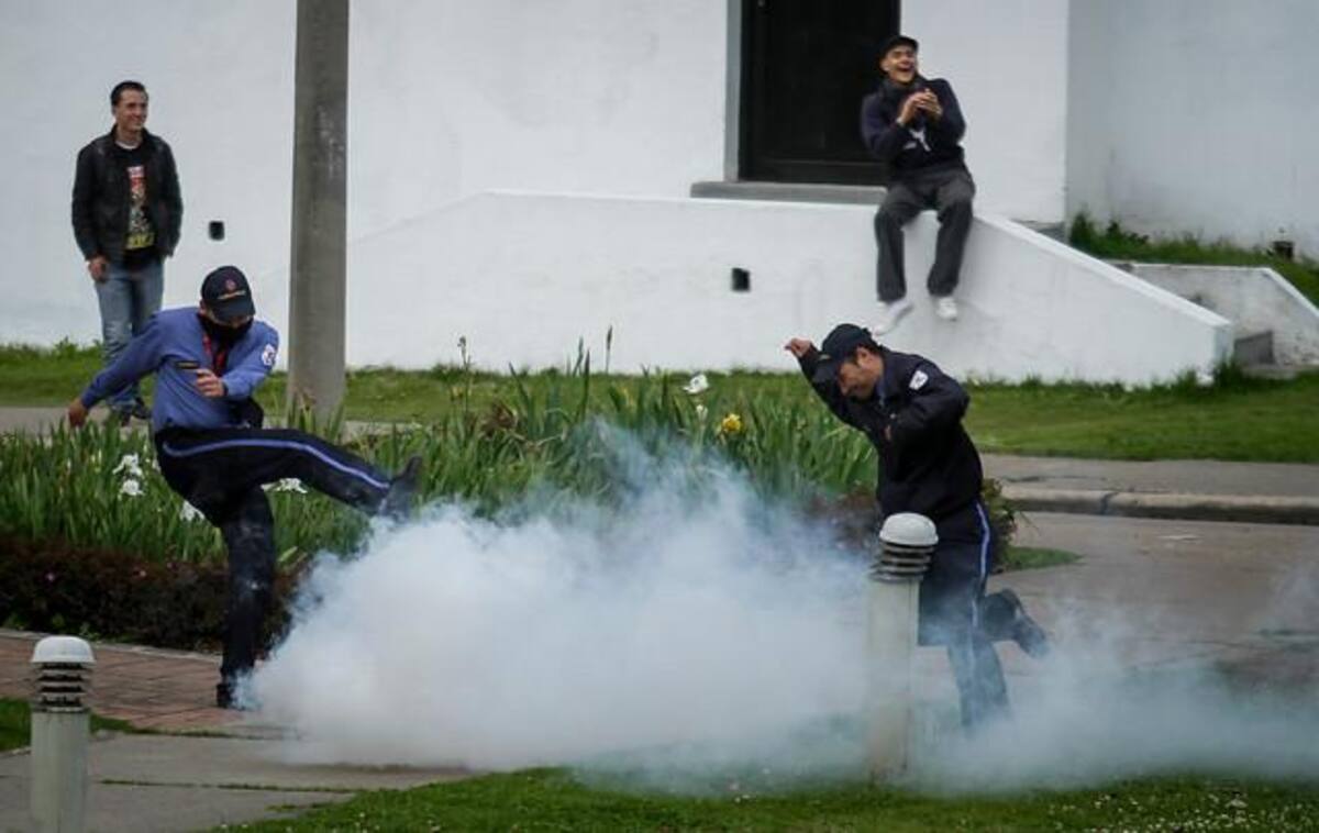 Encapuchados en la sede de Bogotá de la Universidad se enfrentaron al ESMAD.
