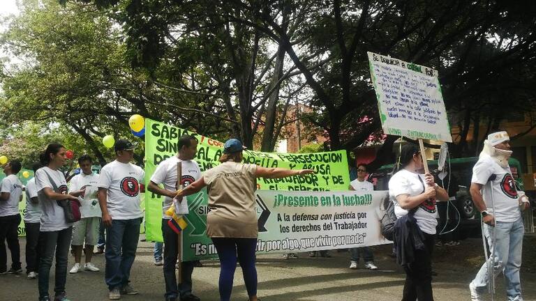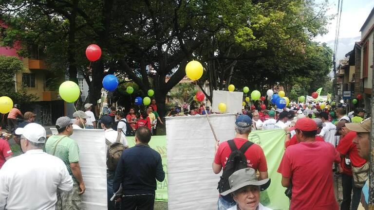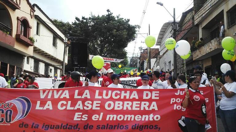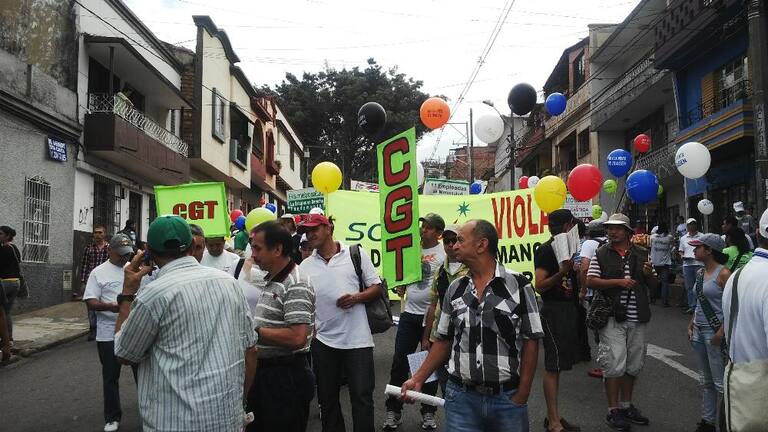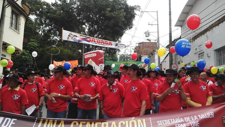 Cientos de trabajadores y organizaciones desarrollan la marcha del primero de mayo/Medellín.