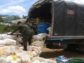 Se incautaron cinco galones de cianuro coreano azul, 10 bultos de cal, 177 galones de gasolina y 357 galones de ACPM.