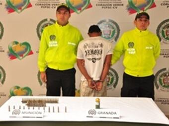 El operativo de captura de este hombre de 18 años de edad, tuvo lugar en el municipio de Calarcá, que permitió la incautación de 54 municiones, 24 cartuchos calibre 7.65 mm, 30 cartuchos calibre 5.56 mm y una granada de 40 mm. Además, figuraba con antecedentes en que el pasado 26 de abril de este año, lanzó un explosivo en la Granja Avícola Tukumay, en la vereda La Bella, en el departamento del Valle