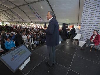 El general (r) dio su primer discurso en el parque Santa Cecilia, en la localidad de Engativá.
