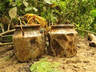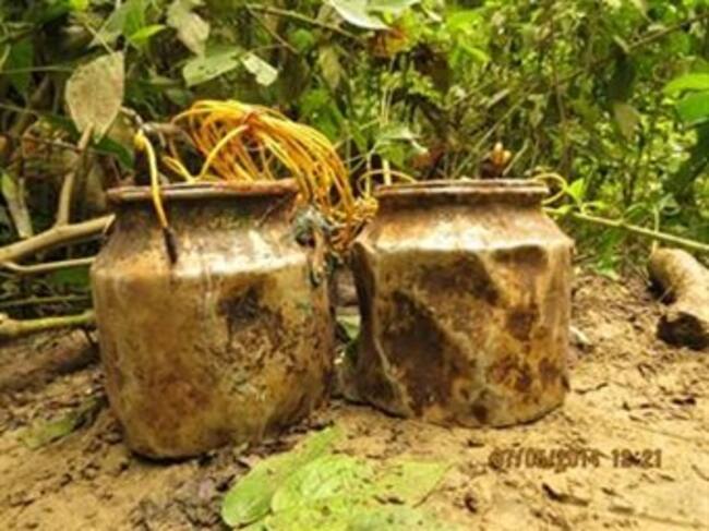 El comandante del Batallón de alta Montaña, coronel Alexander Siabato, explicó que “los artefactos que permanecían activos estaban compuestos por cinco kilos de explosivo contenidos en cantinas de leche, debidamente adecuadas para ser activadas al paso de personas”