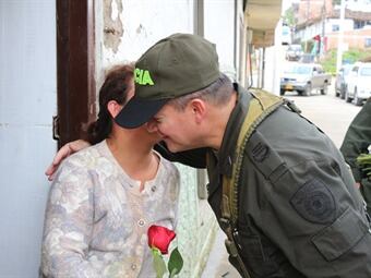 Recorriendo los diferentes barrios de las 27 localidades de Caldas se encuentran los integrantes de la policía nacional en este departamento para buscar a las mamas que hoy celebran su día y darle un fuerte y caluroso abrazo