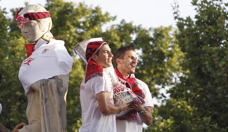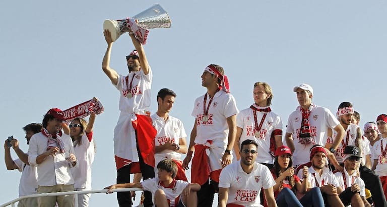 El campeón de la Liga Europa llegó a Sevilla para celebrar