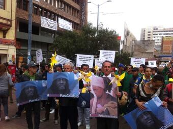 Más de 300 personas, entre habitantes de la calle y estudiantes, marchan por la Carrera Séptima.