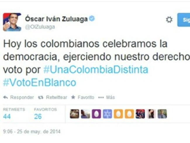 Por error cuenta de Twitter de Zuluaga incitó a votar en blanco
