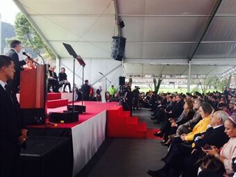 Durante su discurso el presidente Santos la saludó, la felicitó por su papel en las elecciones, le agradeció por acompañar el proceso de paz e incluso hizo mención a una frase de campaña de Clara López en la que manifestaba que era necesario cerrar la fabrica de víctimas. El Polo Democrático en medio de serias divisiones internas definirá este jueves si apoya o no electoralmente la reelección de Juan Manuel Santos.