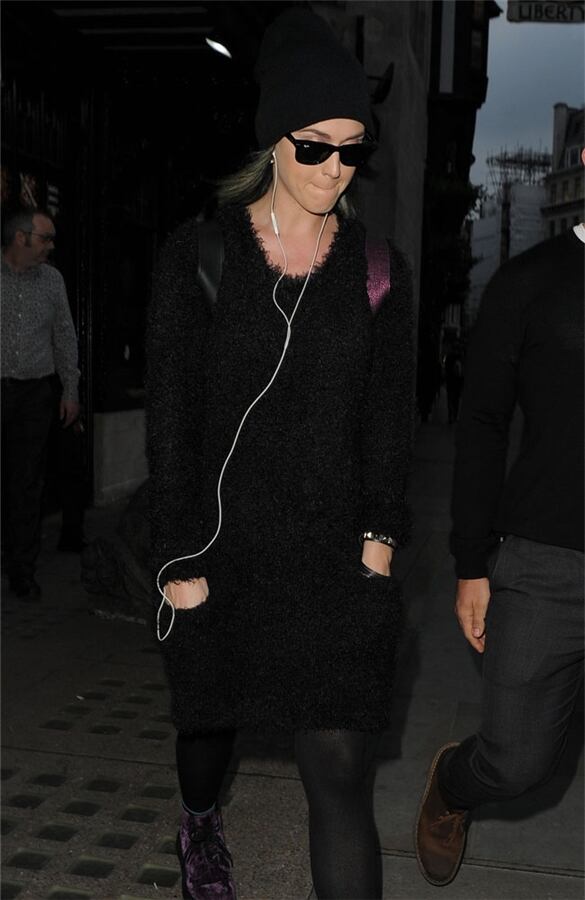 La cantante parecía un adolescente más en plena crisis emo gracias al gorro de lana oscuro del que sobresalían los mechos verdes de su melena. Foto: Bang Showbiz