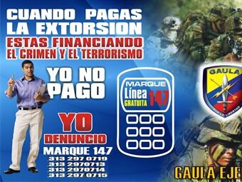 Las autoridades adelantan la campaña “yo no pago yo denuncio” con la que le indican a los ciudadanos que el delito de la extorsión es silencioso en la medida que no se denuncia.