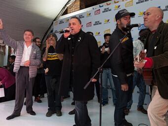 “Que estén todos aquí reunidos acompañando esta causa me emociona me honra muchísimo y me compromete con ustedes los artistas que son un motor de cualquier sociedad y que en este momento están dando un ejemplo de participación positiva”, le dijo Santos a los artistas.