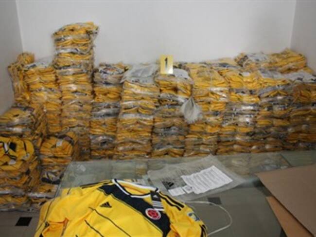 En los barrios Ricaurte, de Soacha, y Veraguas de Bogotá mediante allanamientos se incautaron más de 3.000 camisetas con características similares a la original de la selección Colombia, las cuales en el mercado informal tienen un precio aproximado de 12.000 pesos y con las que pretendían engañar a los compradores que pagaban hasta 10 veces más del valor real haciéndolas pasar por las prendas oficiales, explicó el comandante de la Policía de Cundinamarca, coronel Fernando Torres. “Más de 3.000 camisetas contramarcadas con logotipos falsificados de la selección Colombia iban a ser comercializadas de manera ilegal en la capital y algunos municipios de Cundinamarca”, manifestó el oficial