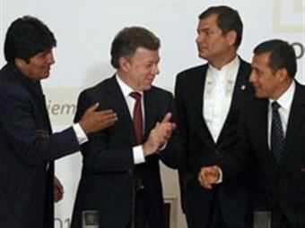 El primer mandatario ha sido el preuano Ollanta Humala, quien a través de su cuenta de Twitter envió "un abrazo y una felicitación" para el presidente Santos y para el pueblo de Colombia y señaló que su éxito por la paz "será el de toda América Latina"