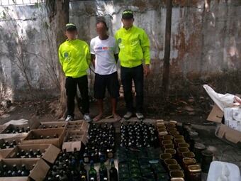 El decomiso se produjo en el barrio La Esperanza, sector Las Delicias y sector Ricaurte, donde se capturan a dos personas de 30 y 40 años de edad, naturales de la ciudad de Cartagena, quienes camuflaban licor adulterado en su propiedad, utilizando como fachada una casa de familia