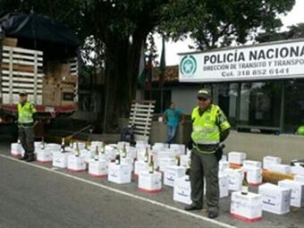 Las 960 botellas de licor de contrabando incautadas en vías del Quindío estaban avaluadas en $14.000.000.