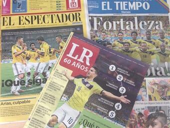 Con títulos como ¡Fortaleza Colombia!, ¡Que siga el baile! o ¿Qué pasa si James hace el milagro?, El Tiempo, El Espectador y La República, entre otros periódicos, destacan el momento brillante de los seleccionados de Colombia