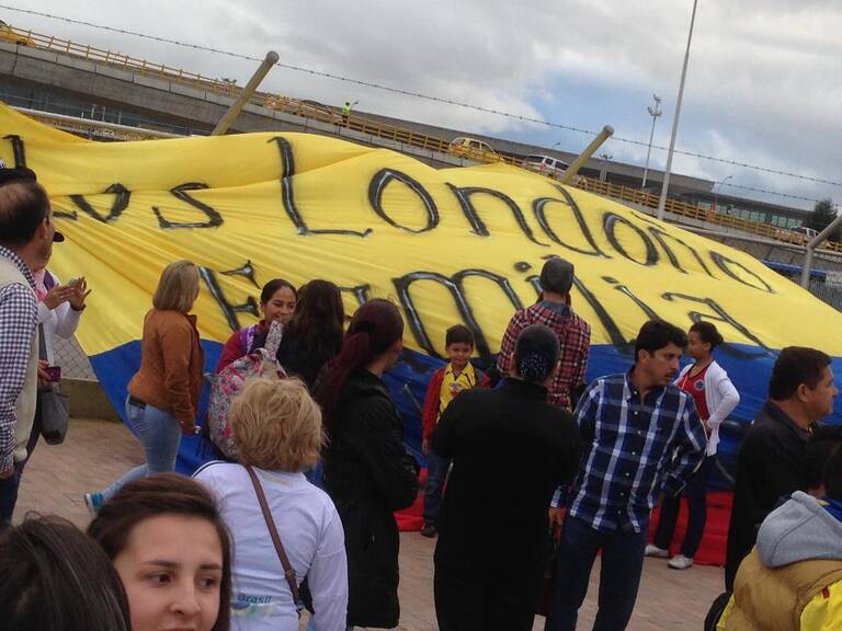 Miles de colombianos reciben a la Selección con pancartas.