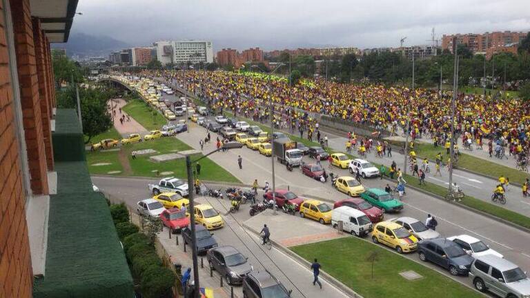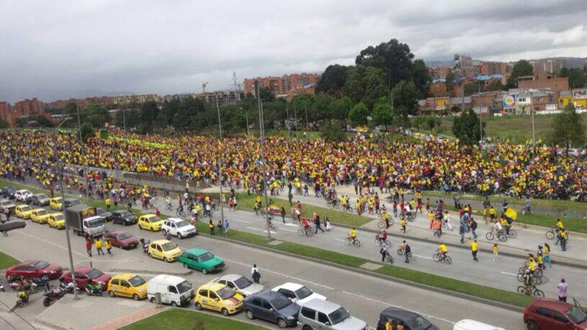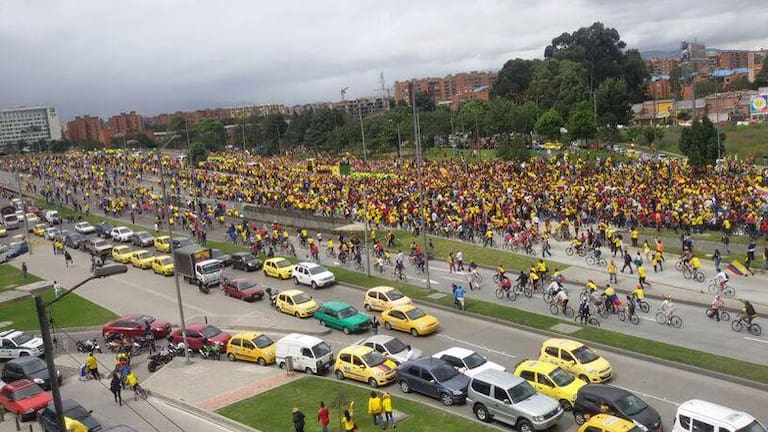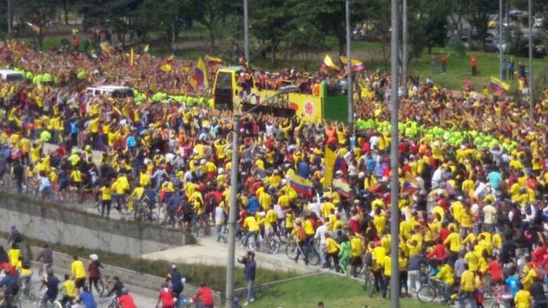 Un mar de camisetas amarillas en Bogotá.
