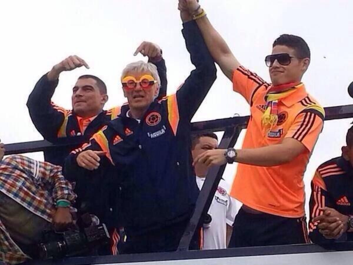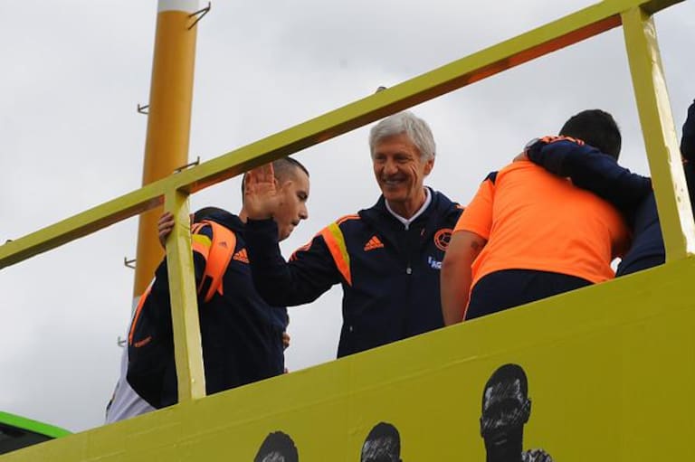 Desde el bus, Pékerman saluda a los hinchas.