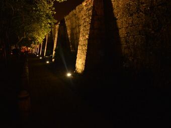 La cortina de muralla que une al baluarte Santo Domingo con el Santiago Apóstol frente a la calle Baloco, del Centro Histórico de Cartagena, luce un nuevo aspecto gracias al proyecto piloto de iluminación de la muralla que encendió sus primeras luces en este sector