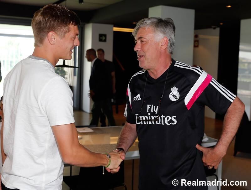 Kroos saluda a Ancelotti, su nuevo entrenador