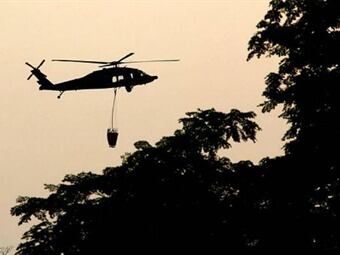 Con un helicóptero Bamby, la Fuerza Aérea intenta controlar un incendio en la Ciénaga Grande del Magdalena que se ha extendido rápidamente por las fuertes brisas