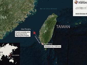 El vuelo GE222 partió del aeropuerto de Kaohsiung Siaogang (situado en la ciudad homónima, al suroeste de Taiwán) con más de una hora de retraso debido a las malas condiciones atmosféricas derivadas del tifón Matmo, que golpeó hoy la isla, y estaba previsto que aterrizara en Penghu una media hora después
