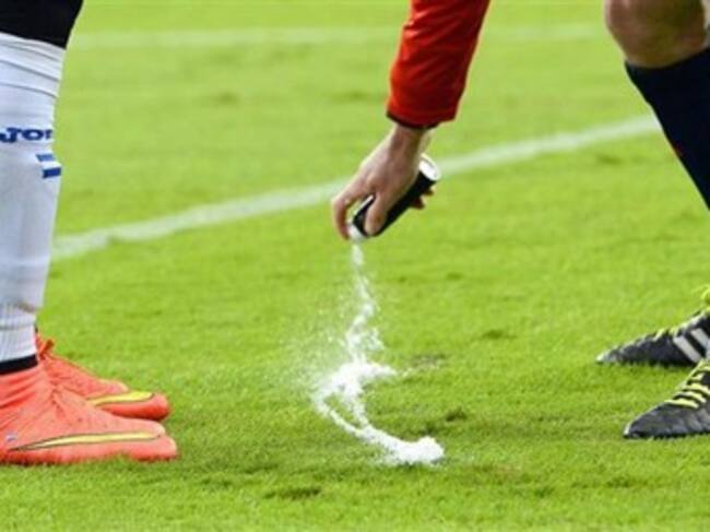 La espuma que sirve para que los árbitros controlen mejor las distancias en jugadas de tiro libre se viene implementando en Suramérica desde hace algunas temporadas y en el Mundial de Brasil 2014 fue una de las novedades aceptadas por FIFA