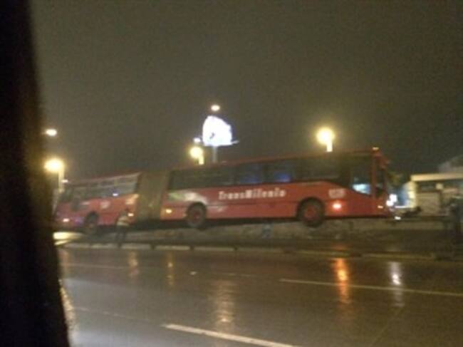 El hecho ocurrió en la calle 78 con NQS. Allí un articulado de Transmilenio se montó en el separador del carril exclusivo quedando en peligro de volcarse, aunque los hechos no pasaron de eso, del susto