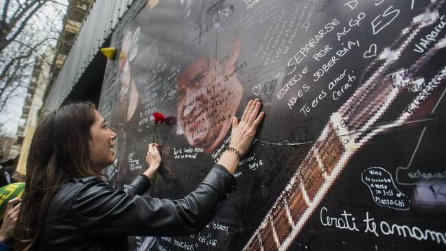Los seguidores del músico escriben mensajes en un cartel con su imagen manifestando su dolor