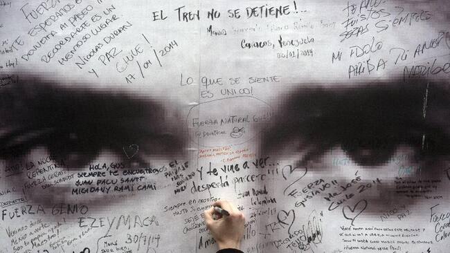 Foto 13 de 14Los seguidores del músico escriben mensajes en un cartel con su imagen manifestando su dolor frente a la muerte del artista.