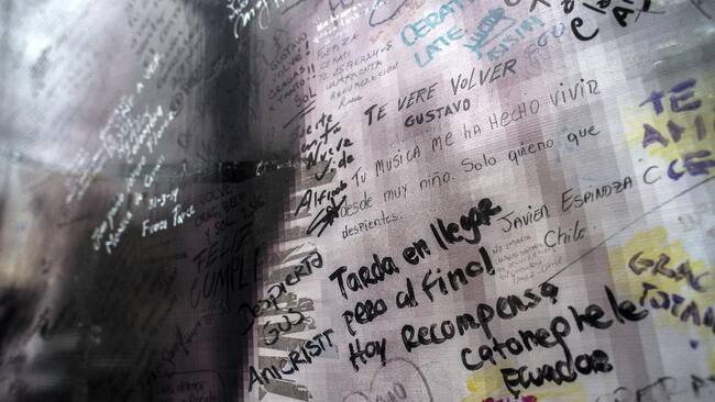 Foto 12 de 14Los seguidores del músico escriben mensajes en un cartel con su imagen manifestando su dolor frente a la muerte del artista.