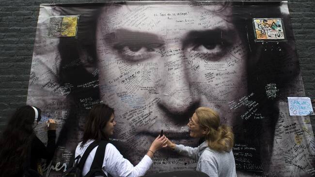 Foto 2 de 14Los seguidores del músico escriben mensajes en un cartel con su imagen manifestando su dolor frente a la muerte del artista.